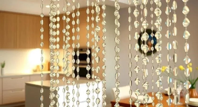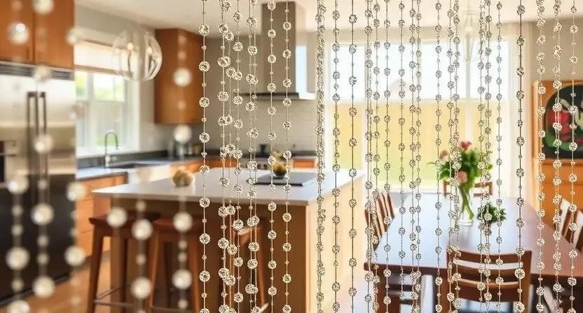 На кухне бусы и гирлянды помогут разделить кухонную зону и столовую, создать уют и добавить декоративности. Бусы можно повесить над барной стойкой или обеденным столом, а гирлянду – использовать для подсветки рабочей поверхности.