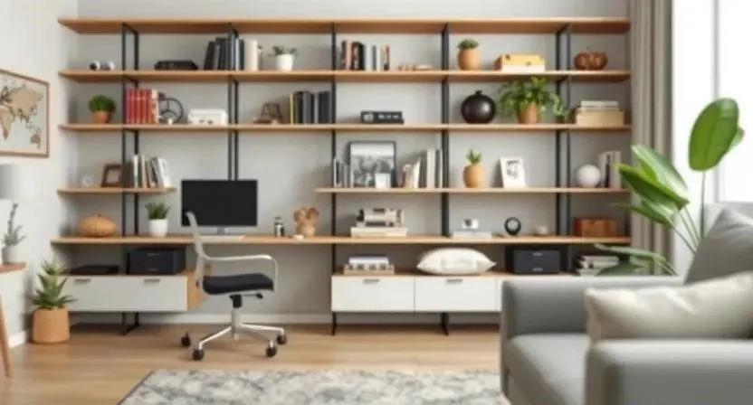 Стеллажи – это функциональное и стильное решение для зонирования. Виды стеллажей: открытые, закрытые, угловые, настенные. Высота, ширина и глубина стеллажа должны соответствовать размеру комнаты и назначению зоны. Расположение стеллажа может быть разным: вдоль стены, посередине комнаты, перпендикулярно стене. Я выбрал высокий стеллаж, чтобы максимально использовать пространство и создать визуальный барьер между гостиной и кухней.